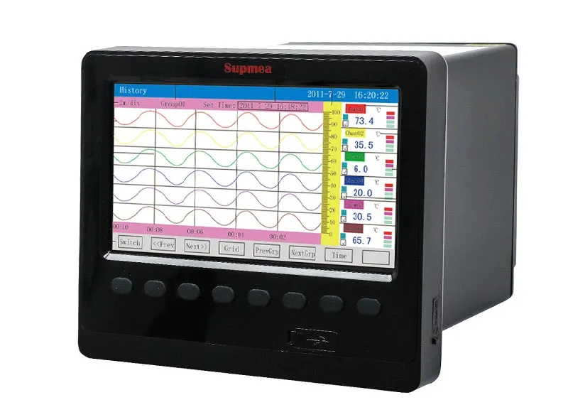 Máy ghi dữ liệu không cần giấy tờ SUP-R6000C được trang bị đầu vào đa năng 24 kênh (có thể nhập bằng cấu hình: điện áp tiêu chuẩn, dòng điện tiêu chuẩn, cặp nhiệt điện, điện trở nhiệt, tần số, mV, v.v.). Nó có thể được trang bị điều khiển 8 vòng và đầu ra cảnh báo 18 kênh hoặc đầu ra analog 12 kênh, giao diện truyền thông RS232/485, giao diện Ethernet, giao diện máy in mini, giao diện USB và ổ cắm thẻ SD; nó có thể cung cấp khả năng phân phối cảm biến; nó sở hữu chức năng hiển thị mạnh mẽ, hiển thị đường cong thời gian thực, hiển thị điều khiển thời gian thực, xem lại đường cong lịch sử, hiển thị biểu đồ thanh, hiển thị trạng thái cảnh báo, v.v.