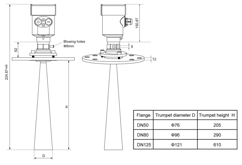 Mức bể hình nón trên cùng, có thể được lắp đặt ở phía trên của bể là trung gian, có thể đảm bảo phép đo đến đáy hình nón