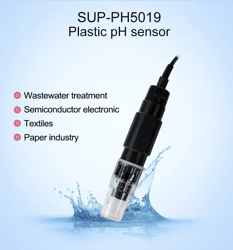 Cảm biến pH nhựa SUP-PH5019 được sử dụng rộng rãi trong xử lý nước thải và các lĩnh vực bao gồm khai thác và luyện kim, sản xuất giấy, bột giấy, dệt may, công nghiệp hóa dầu, quy trình công nghiệp điện tử bán dẫn và kỹ thuật hạ nguồn của công nghệ sinh học.