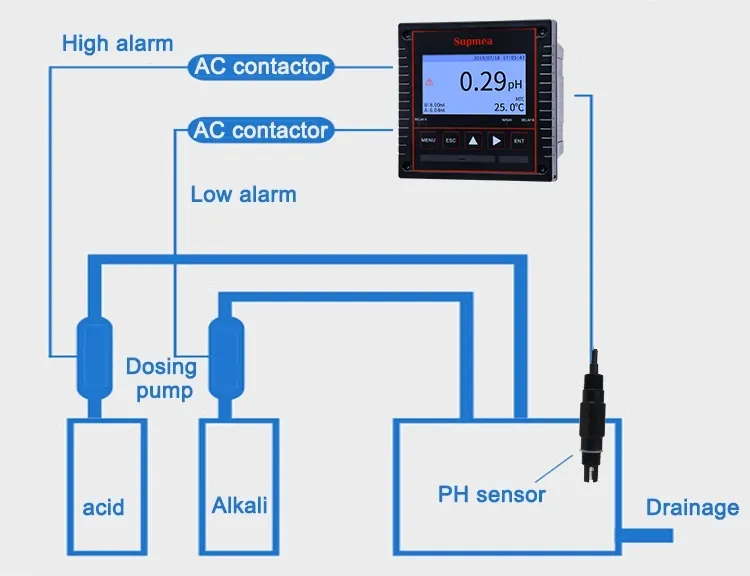 Máy đo pH công nghiệp SUP-PH8.0 là máy phân tích pH trực tuyến được ứng dụng trong ngành luyện kim công nghiệp hóa chất, bảo vệ môi trường, thực phẩm, nông nghiệp, v.v. Với tín hiệu analog 4-20mA, tín hiệu số RS-485 và đầu ra rơle. Có thể được sử dụng cho các quy trình công nghiệp và xử lý nước, kiểm soát độ pH và hỗ trợ truyền dữ liệu từ xa, v.v.